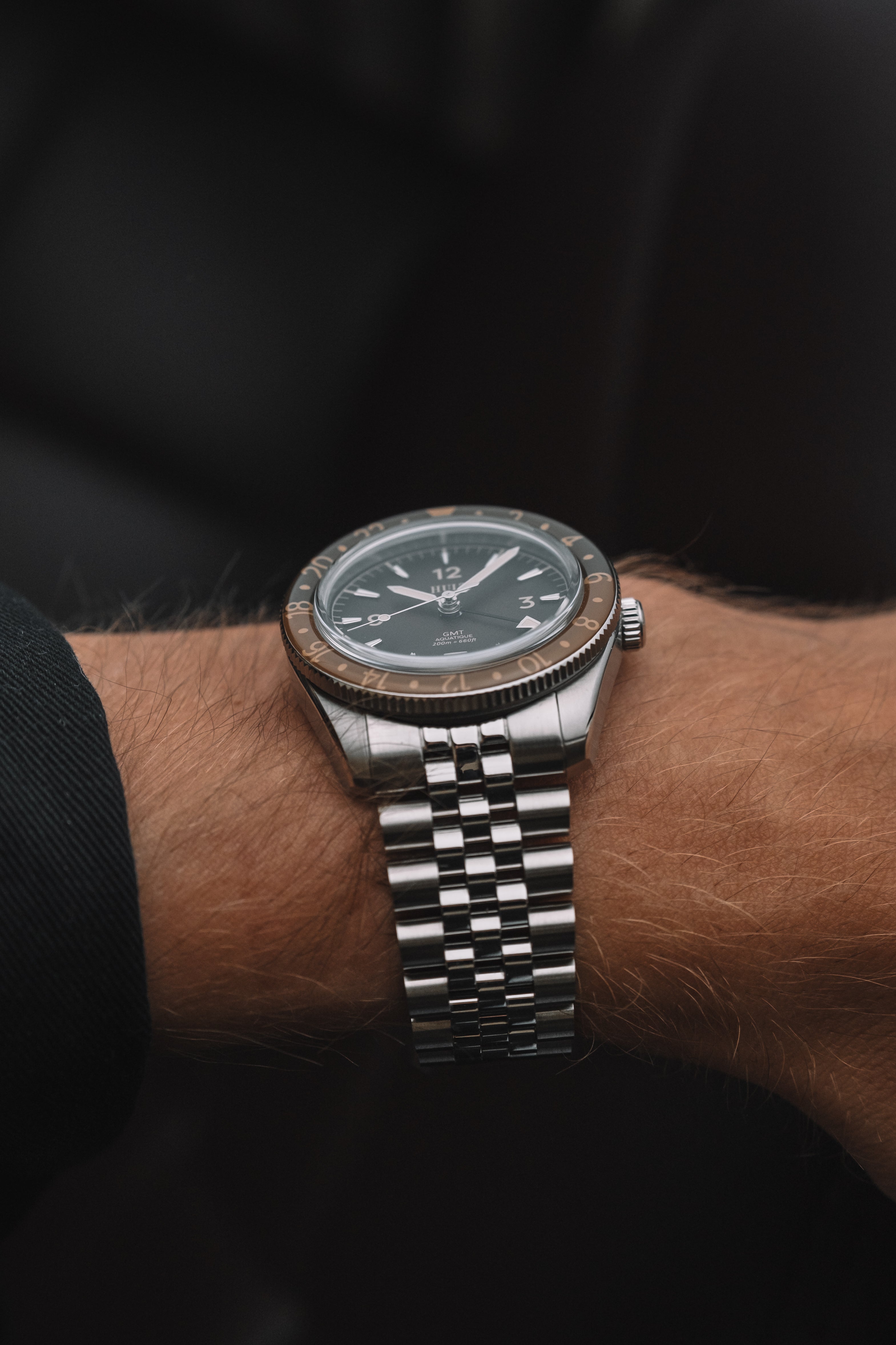 Like the original, the GMT version draws inspiration from mid-century tool watches, but with an added focus on versatility across time zones. The additional hand allows the wearer to track a second time zone with ease, making it as useful in the air as it is in the sea.