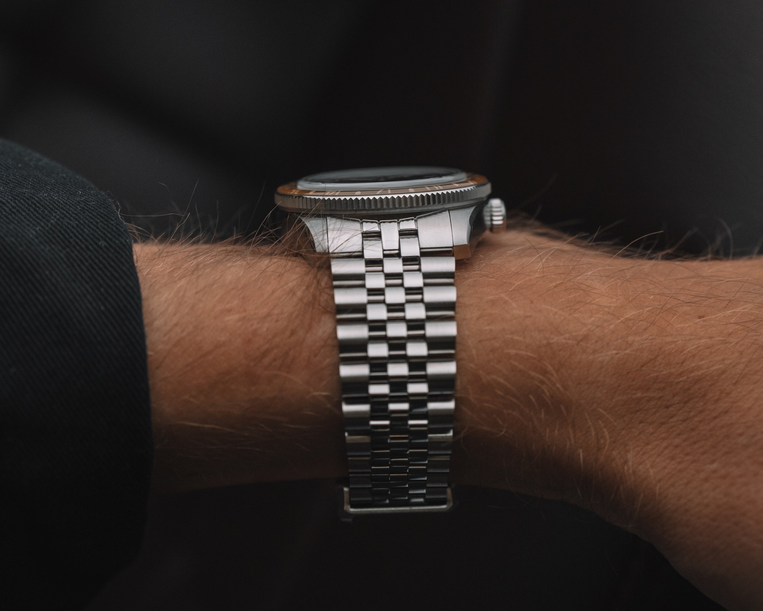 A domed sapphire bezel—taking inspiration from the iconic bakelite bezels of the past—reinforces its vintage heritage while ensuring durability for modern use.