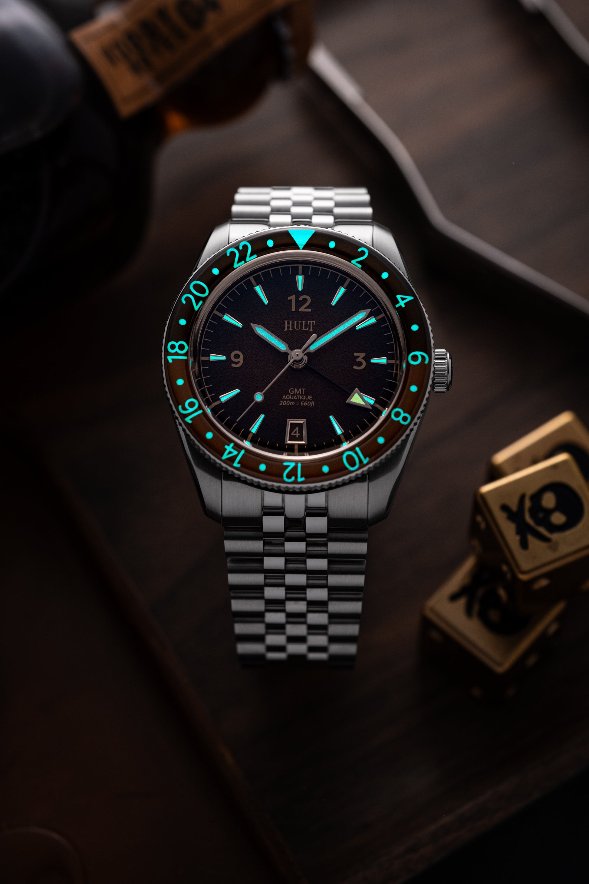 The Aquatique GMT is built for everyday use, whether you’re traveling abroad or simply keeping track of time in another city.