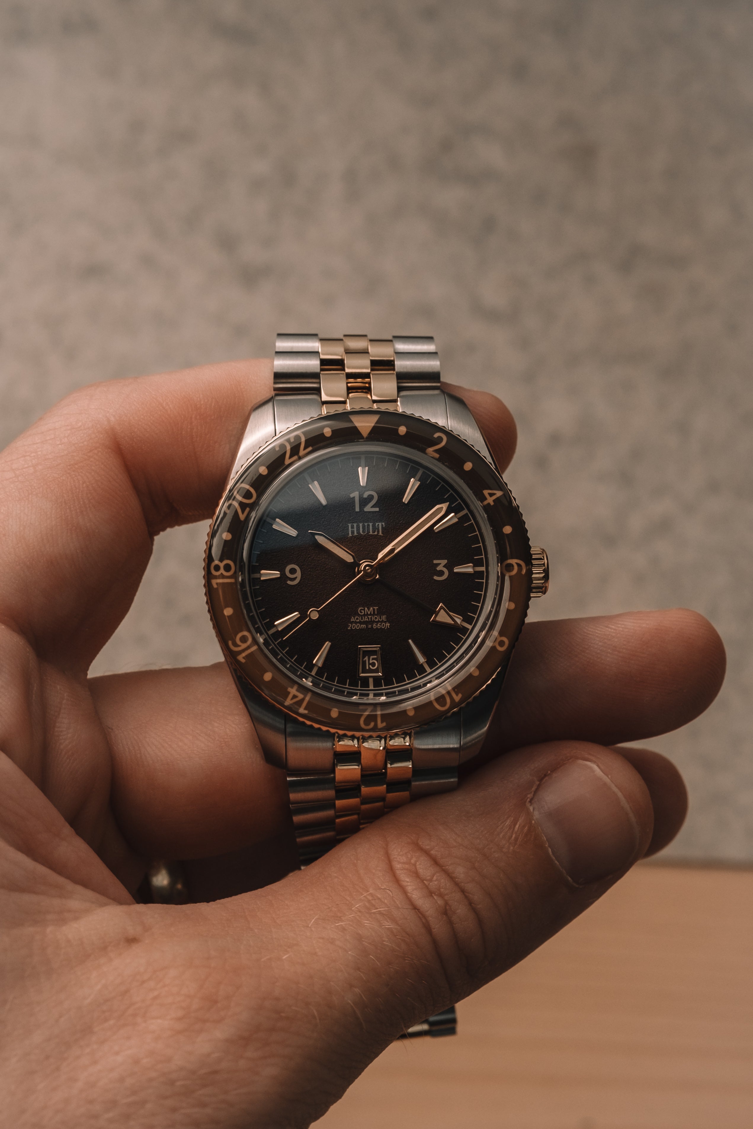 Like the original, the GMT version draws inspiration from mid-century tool watches, but with an added focus on versatility across time zones. The additional hand allows the wearer to track a second time zone with ease, making it as useful in the air as it is in the sea.